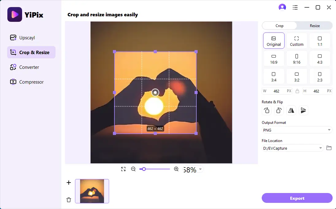 自由裁剪,精准构图,随心所欲地剪裁! 自由选择区域、比例锁定、可自定义尺寸、简单拖动以及轻松编辑,使图像构图更加清晰醒目。